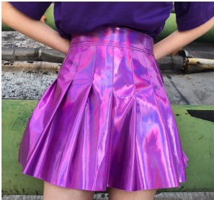 Holographic Box-pleated Partywear Skirt - Violet