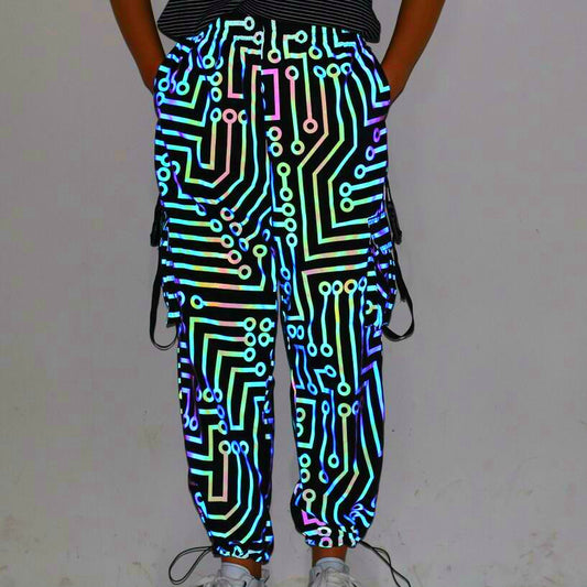 Circuit Pattern Colourful Reflective Trousers - Black