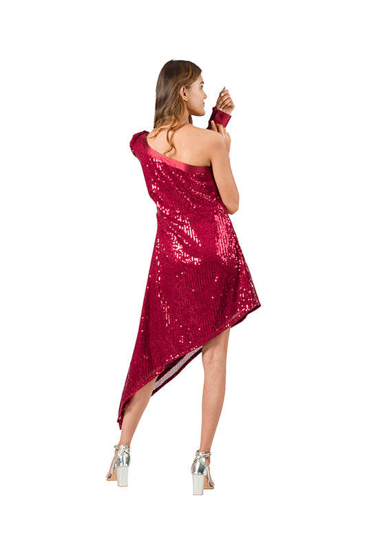 Shimmering Chicest One Shoulder Dress Silver - SILVER