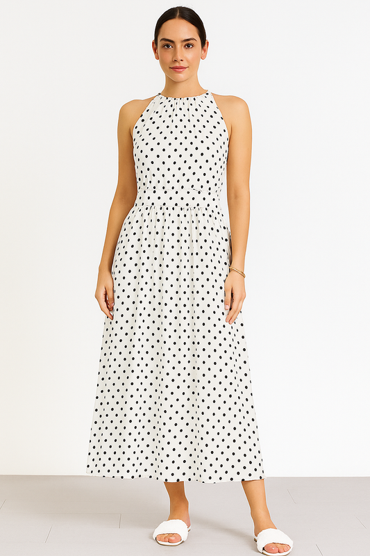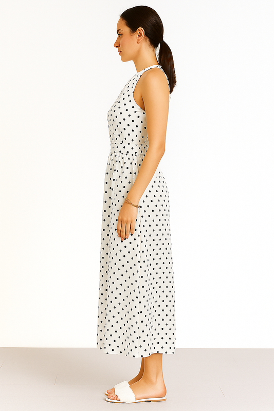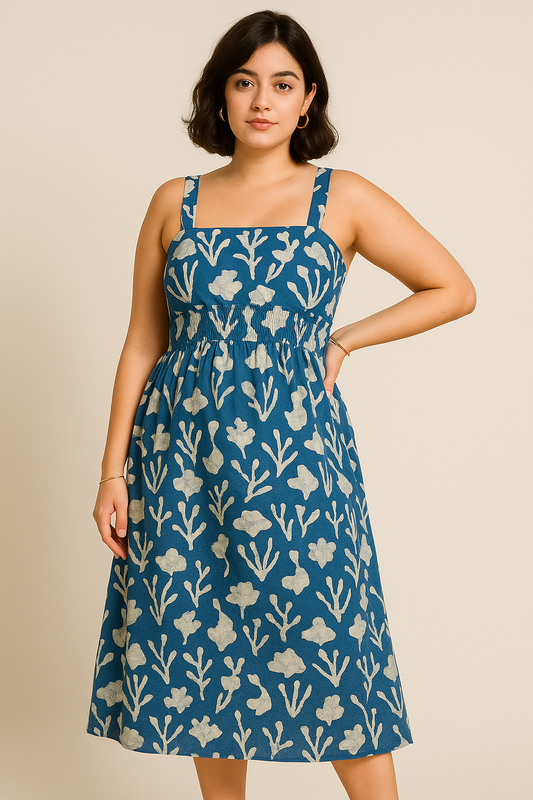 Back Cross Tie Slit Midi Summer Dress - Navy Blue