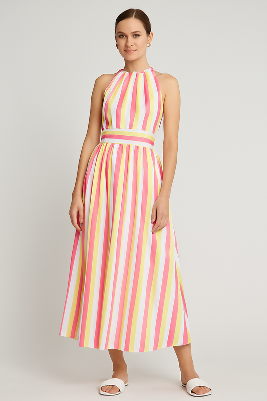 Back Cross Tie Slit Midi Summer Dress - Yellow