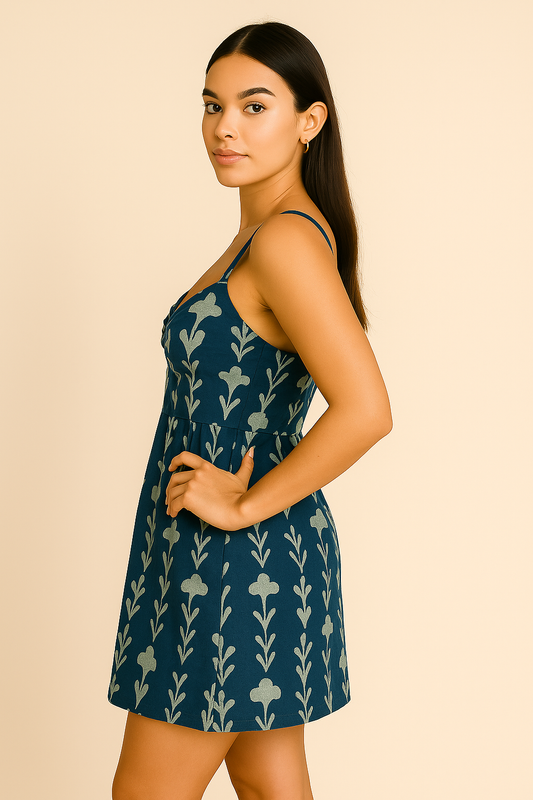 Adjustable Shoulder Strap Floral Print Short Dress - Light Blue