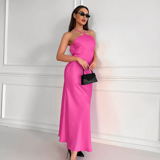 Slim Fit Elegant Long Sheath Dress - Rose Red