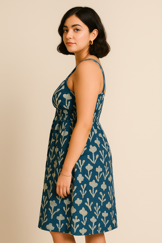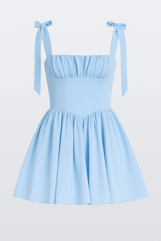 Adjustable Shoulder Strap Floral Print Short Dress - Light Blue