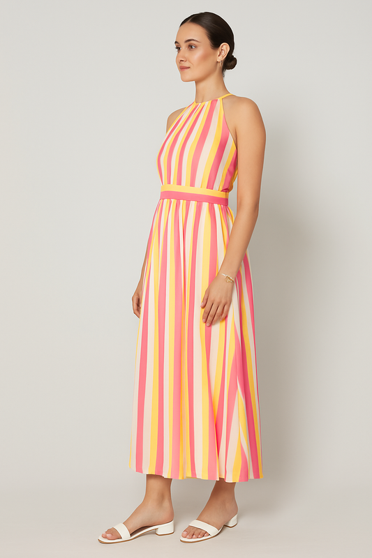 Ruffle Tie-Up Slit Maxi Dress - Pink