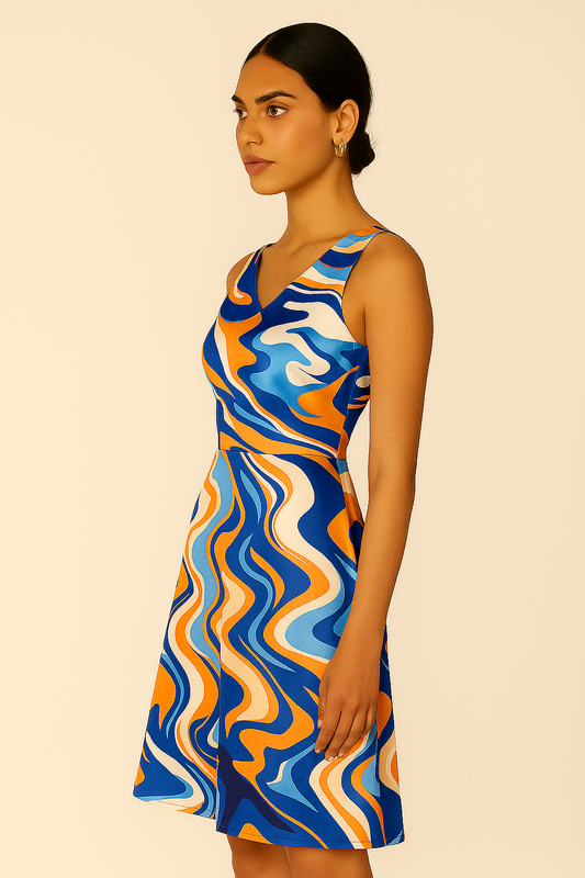 Tropical Bloom V-Neck Sleeveless Fit & Flare Dress