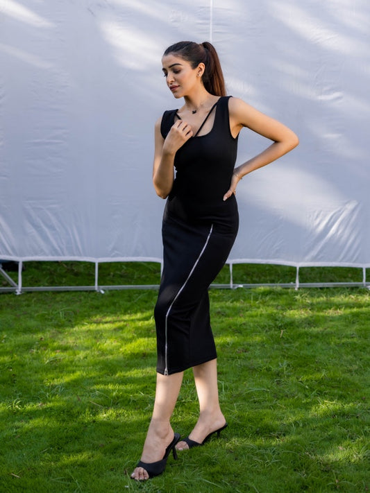 Diana High Zip Slit Dress - Black