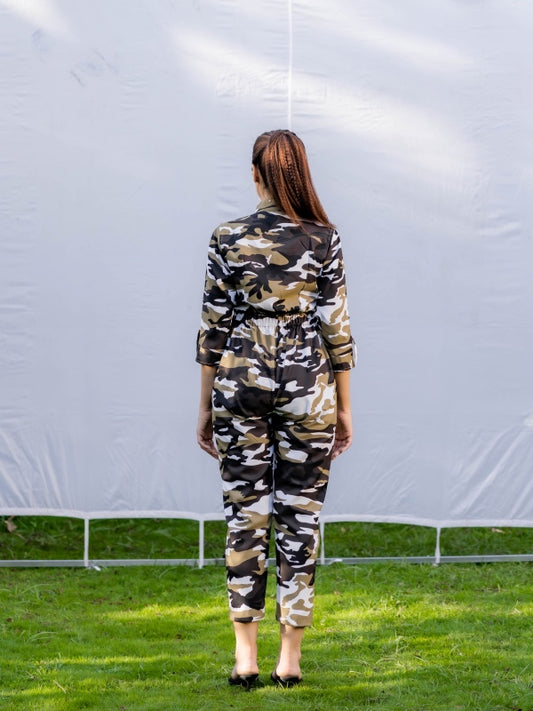 25% OFFSarah Smocked Top Camo Jumpsuit