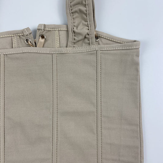 Pearl Drop Neck Strapless Back Lace-up Corset Top - Apricot
