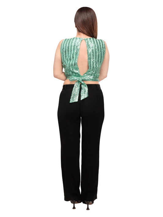 Square Neck Frill Top - Green