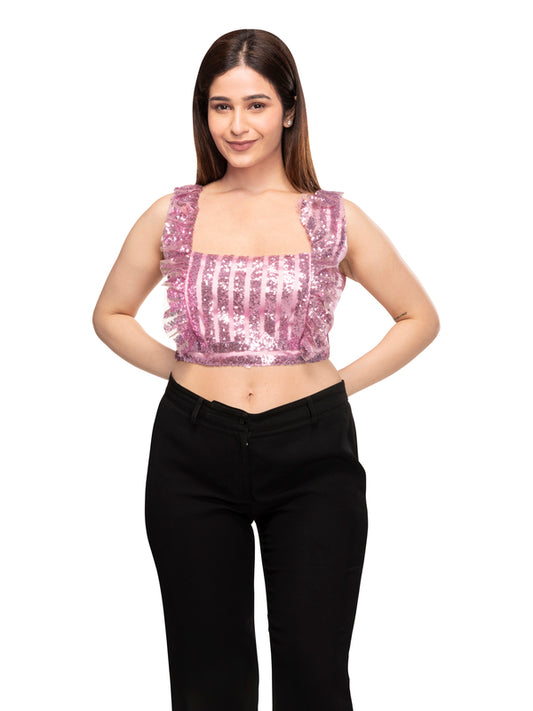 Square Neck Frill Top Pink - Pink