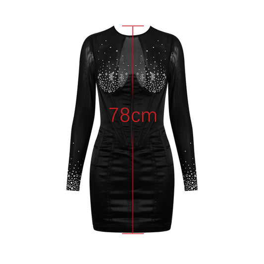 Net Embroidered Flowers Embroidered Puff Sleeve Corset - Black